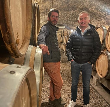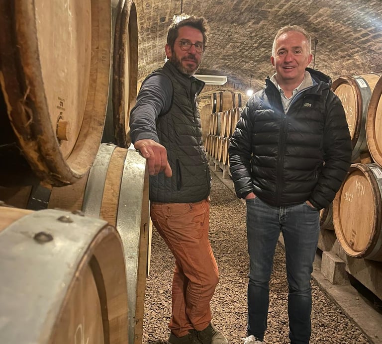 Née d’une rencontre entre Philippe Revenu et Mathieu Joblot, la Maison Joblot Revenu incarne une vision du vin où passion, terroir et respect de la nature s’unissent pour créer des cuvées authentiques.